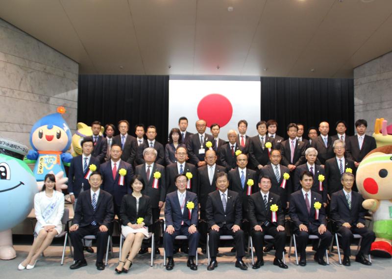 平成26年9月10日(水)に平成26年度国土交通大臣賞(循環のみち下水道賞)の表彰式が行われました。本表彰は持続的発展が可能な社会の構築に貢献する「循環のみち下水道」に関する優れた取組みに対し、表彰を行うものです。今回は15件、16団体が受賞し、北川国土交通副大臣からそれぞれの団体の代表に表彰状が授与されました。