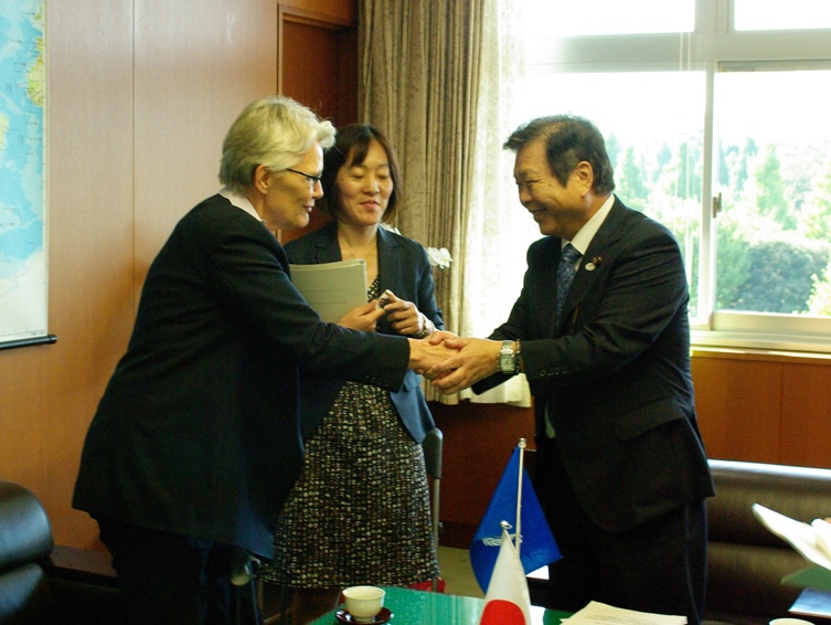 平成26年10月3日(金)、ワルストロム国連事務総長特別代表(防災担当)が北川国土交通副大臣を表敬訪問されました。