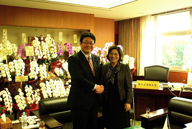 平成26年10月16日(木)、西村副大臣は、ベトナム社会主義共和国のファン・ティ・ミー・リン建設省副大臣の訪問を受けました。