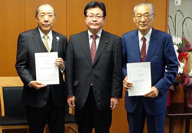 平成26年11月12日(水)に、名古屋港及び四日市港における特例港湾運営会社として名古屋港埠頭株式会社及び四日市港埠頭株式会社をそれぞれ指定し、同日開催した指定書交付式において西村国土交通副大臣より指定書を交付しました。