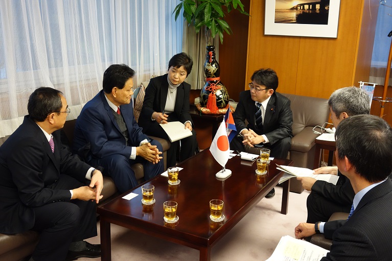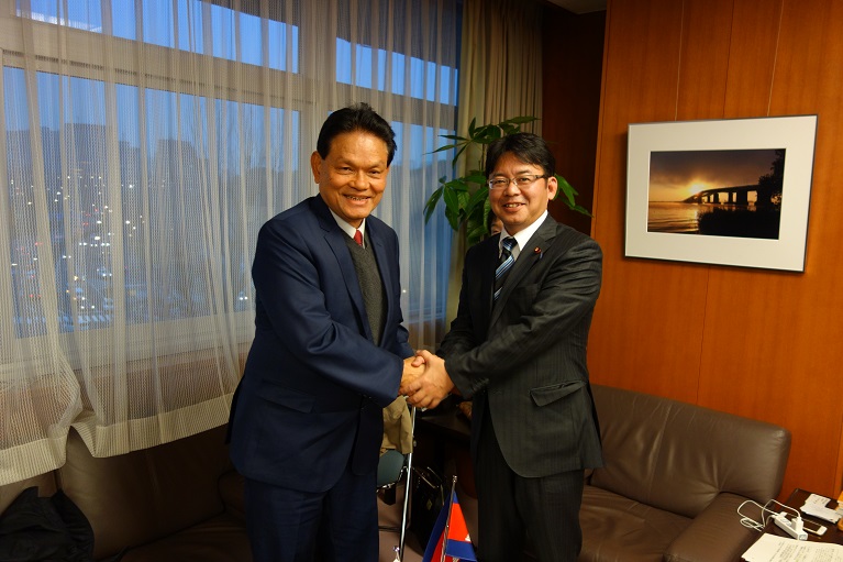【平成27年1月26日】 カンボジア王国チャンコサル公共事業運輸省副大臣によるうえの政務官への表敬訪問