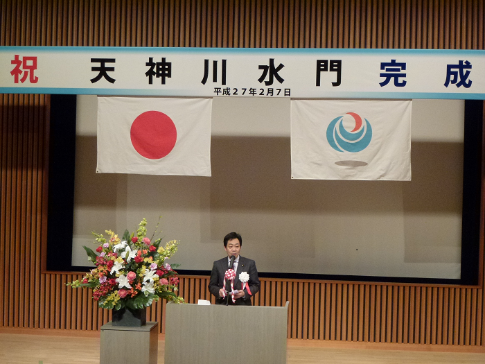 【平成27年2月7日】 青木政務官が天神川水門完成式に出席