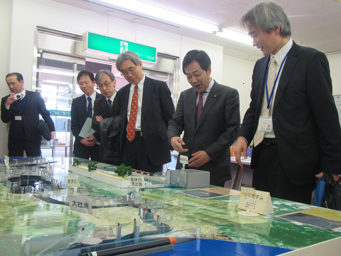 2月7日(土)青木大臣政務官は島根県松江市内で開催された「天神川水門完成式」に出席し、「水門が浸水の被害軽減に効果を発揮し地域の発展に貢献するよう期待する。引き続き湖岸堤整備や大橋川改修工事について、治水、環境、まちづくりが調和する改修を推進する。」と挨拶しました。