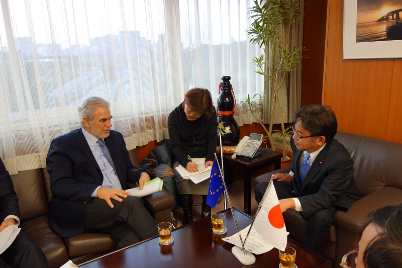 平成27年3月13日(金)、欧州委員会スティリアニデス人道援助・危機管理担当委員がうえの国土交通大臣政務官を表敬訪問されました。