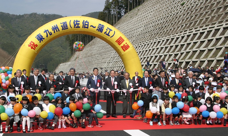 太田大臣は、冒頭の挨拶で「佐伯IC~蒲江IC間は、東九州道の大分市と宮崎市の間における最後のミッシングリンクだったが、今回の開通でつながり、東九州にも高速交通軸が誕生する。」と述べるとともに「この道路は、地域経済や国際競争力、安全・安心を支えるネットワークとして重要な役割を担っており、活力に満ち溢れた九州を実現するための重要な鍵である。」と述べました。
