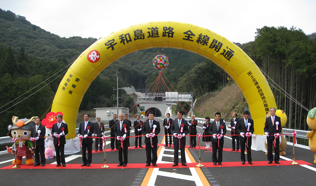 【一般国道56号宇和島道路】 開通セレモニーにおけるテープカットの様子