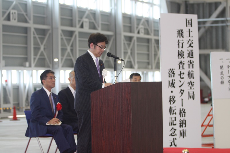 【平成27年5月16日】 航空局飛行検査センター格納庫落成・移転記念式典にうえの政務官が出席