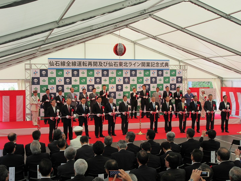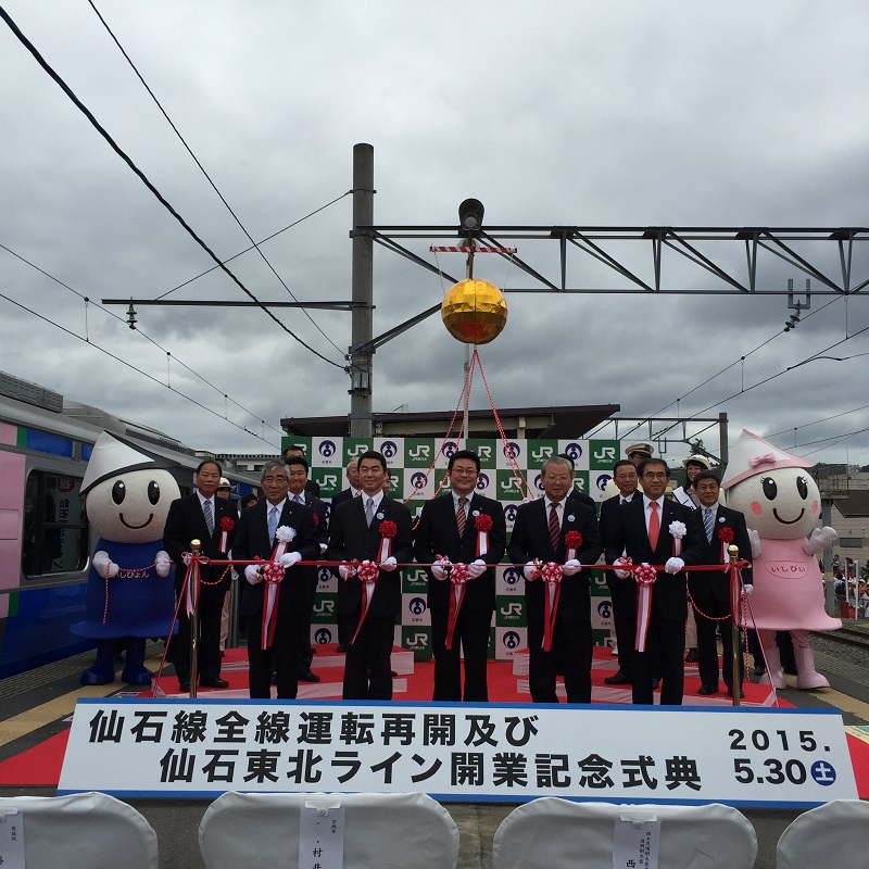JR仙石線は、東日本大震災以来4年2ヶ月ぶりに全線運転再開となったものです。また、仙石東北ラインの運行開始により、仙台・石巻間の所要時間が約10分短縮され、最短52分になるなど、利便性も向上しました。