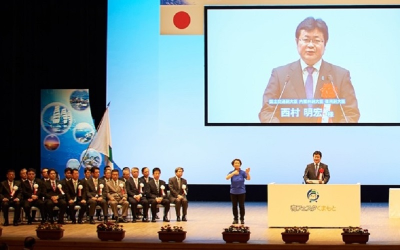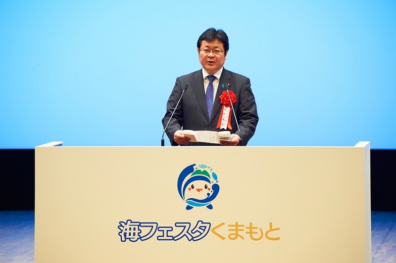 西村副大臣は、7月23日、熊本県熊本市を中心に有明海沿岸地域の7市1町で開催されている海フェスタくまもと(7月18日~8月2日)の記念式典及び祝賀会に秋篠宮殿下及び同妃殿下とともに出席し、「熊本県、周辺自治体及び海運業をはじめとする地域産業との連携により実りある催しとなり、さらなる地域振興に資することを期待しております。」と来賓の挨拶を述べました。