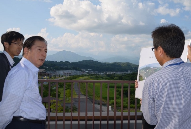 川路・龍江・竜丘河川事業を視察する太田大臣