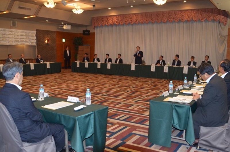 南信地域の首長との意見交換会で挨拶する太田大臣