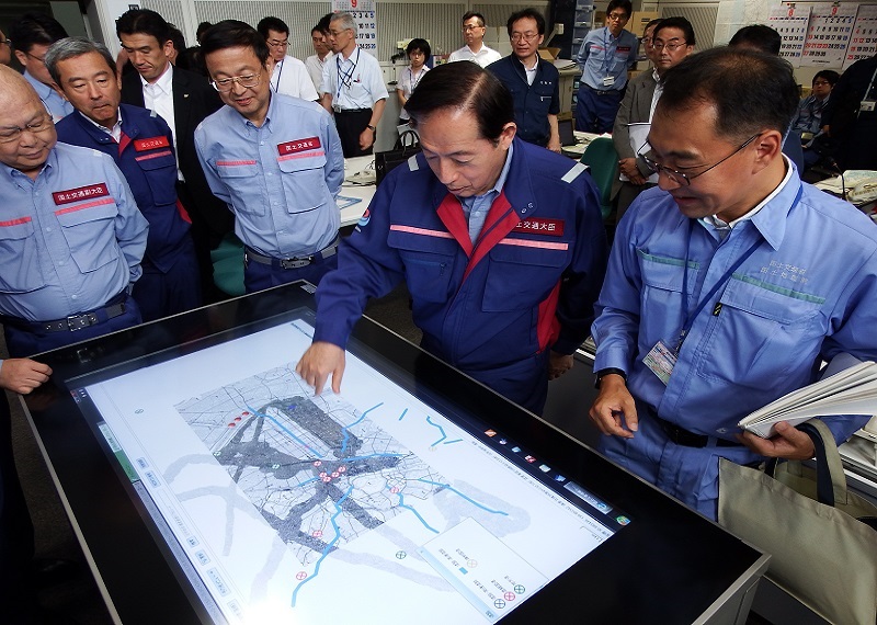で被害状況を確認する太田大臣