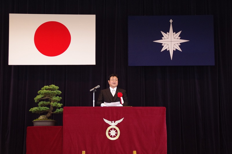 西村副大臣は、国家・国民の皆様のために在学中に学んだ知識、技能を十分に発揮し、活躍することを期待している旨の祝辞を述べました。