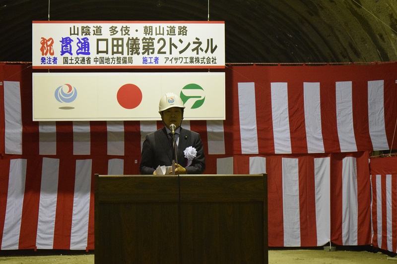 【平成27年10月4日】 山陰道「多伎・朝山道路」口田儀第2トンネル貫通式に青木国土交通大臣政務官が出席