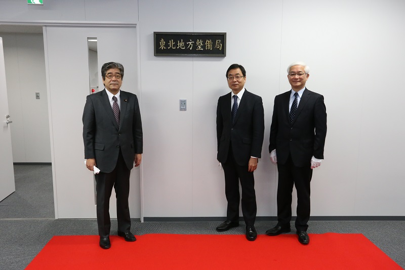 土井副大臣は、11月30日、仙台合同庁舎B棟内の東北地方整備局で執り行われた「東北地方整備局新庁舎開庁式」に出席しました。