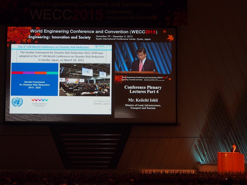 石井大臣は、11月30日、日本で初めての開催となる「第5回世界工学会議」(於 京都国際会館)の開会式に出席するとともに、基調講演を行いました。