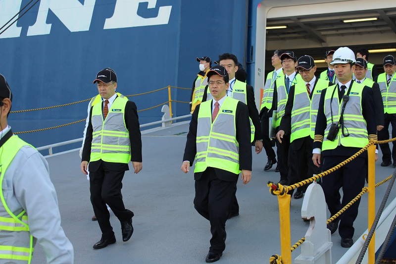 横浜港大黒ふ頭地区における自動車運搬船内の視察