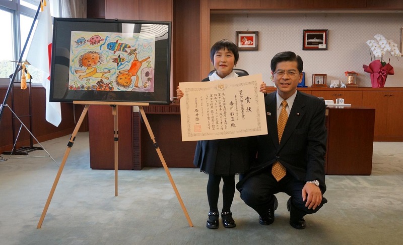 12月24日、第16回未来に残そう青い海・海上保安庁図画コンクールの特別賞(国土交通大臣賞)の表彰式が行われました。