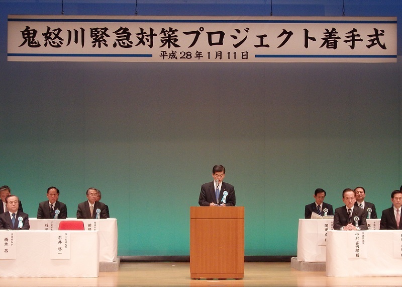 【平成28年1月11日】 石井大臣が「鬼怒川緊急対策プロジェクト着手式」に出席