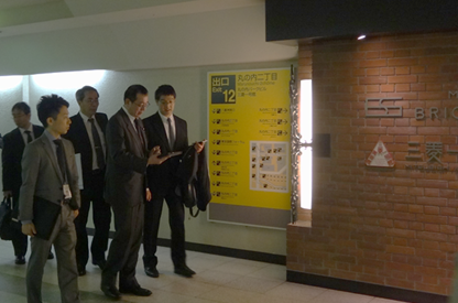 視察では、実証実験用に一般公開している、地上・地下・屋内を問わずナビゲーションができるアプリケーション「ジャパンスマートナビ(トライアル版)」を実際に利用し、屋内の電子地図と測位環境が整備されたことによるサービスの利便性を確認しました。