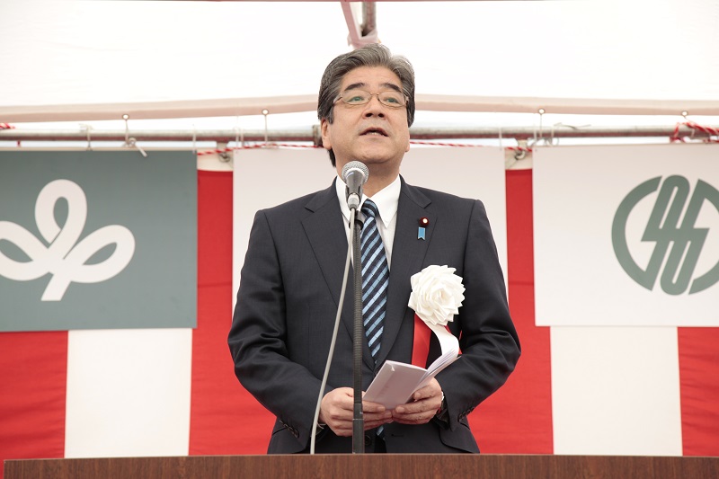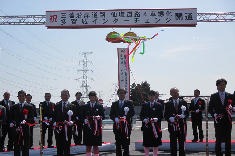 土井副大臣は、挨拶のなかで「本路線は、宮城県内などで製造された完成自動車や製紙工場製品などを仙台塩釜港に運ぶ輸送ルートとなっており、時間短縮・輸送コスト削減など物流効率化による生産性向上に大きく貢献できるものと期待している。これからも、被災地の三陸沿岸部へ向かう交通需要を支え、復興加速化にも大きな効果を発揮するため、残る区間についても、早期完成に向け、努力していきたい。」と述べました。