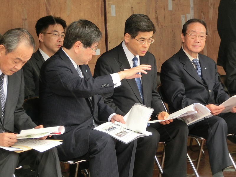 共同配送について説明を受ける石井大臣(手前中央)