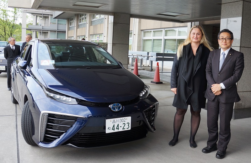会談後、アイハン副大臣は圧縮水素ガスを燃料とする燃料電池自動車「MIRAI」(トヨタ自動車)に試乗しました。