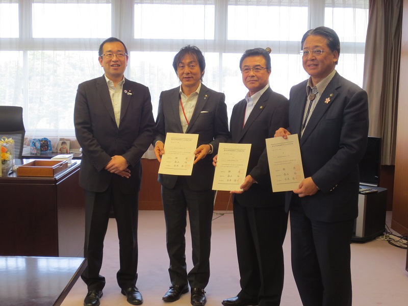 それに伴い、津島大臣政務官が主務大臣連名の認定証を伊賀市長、千曲市長及び岡崎市長に交付しました。