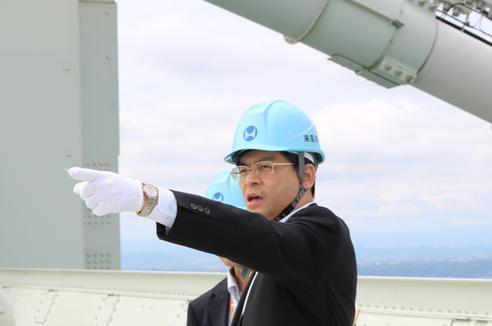 明石海峡大橋を視察される石井大臣