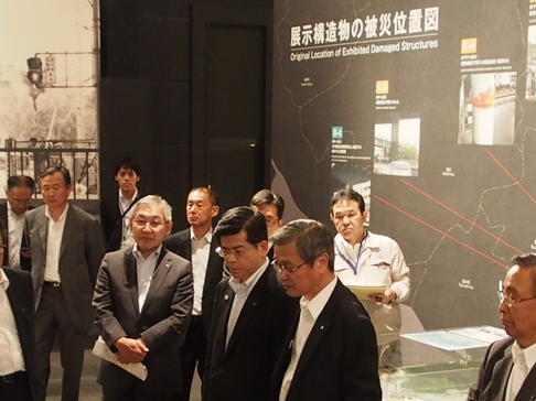 震災資料保管庫を視察される石井大臣