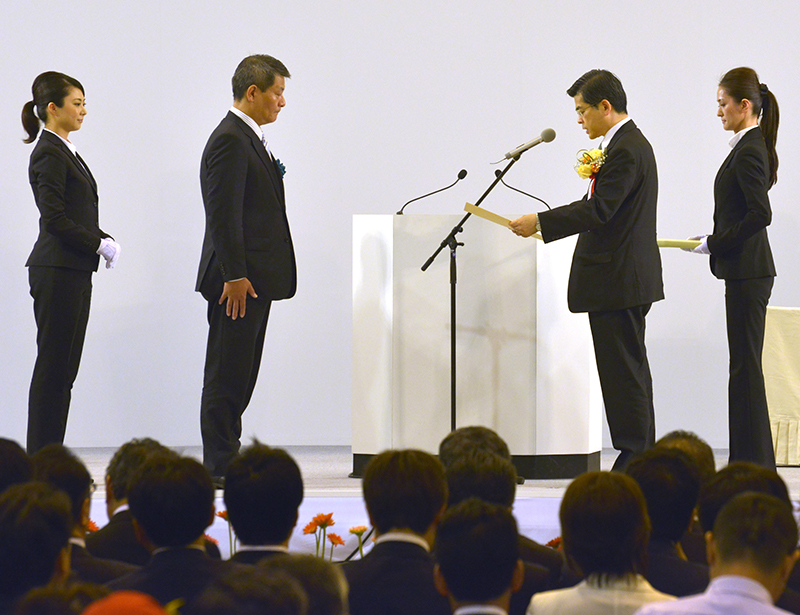 同式典においては、第27回「みどりの愛護」功労者国土交通大臣表彰の表彰式が行われ、受賞された130団体の代表に対し、石井大臣より感謝状が授与されました。