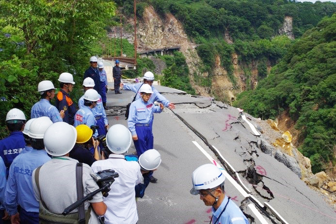【平成28年6月18日】 熊本地震の被災現場等を石井大臣が視察