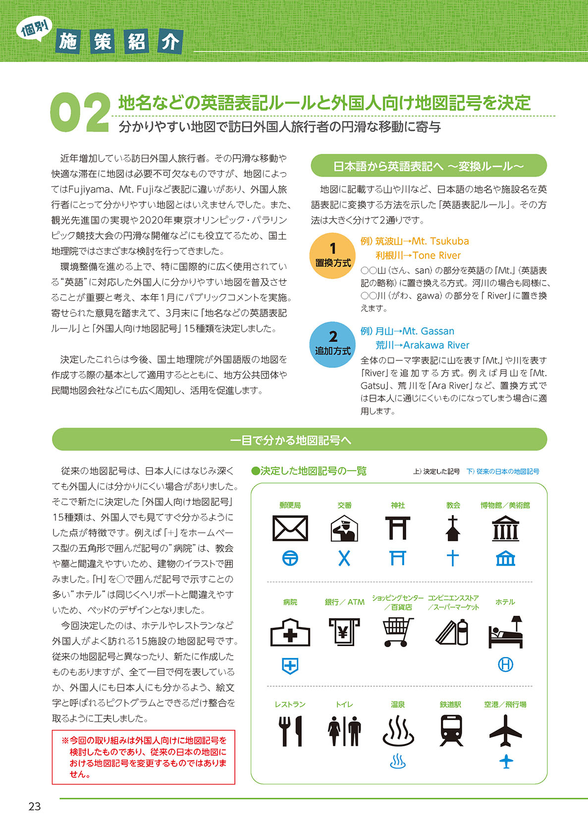 「国土交通」NO.138(2016.6-7)施策紹介 「地名などの英語表記ルールと外国人向け地図記号を決定」