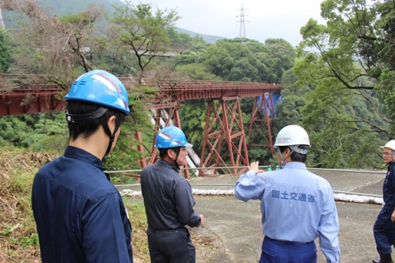 阿蘇大橋地区の被災状況等の説明を受ける土井副大臣