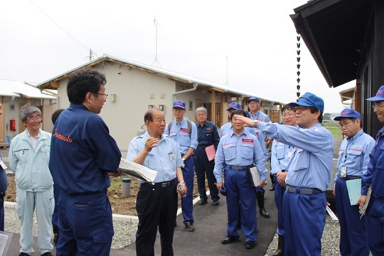 西原村長から応急仮設住宅について説明を受ける土井副大臣