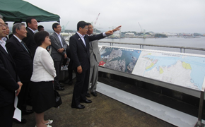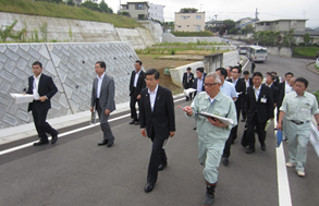 JR女川駅を中心とした復興まちづくりの状況を視察した後に、仙台塩釜港(塩釜港区)の復旧状況、仙台市で大規模な宅地被害のあった折立五丁目の復旧状況などを視察しました。