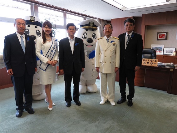7月14日(木)、石井啓一国土交通大臣は、2016年度ミス日本「海の日」杉浦 琴乃(すぎうら ことの)さん、公益社団法人 日本水難救済会会長等による表敬訪問を受けました。