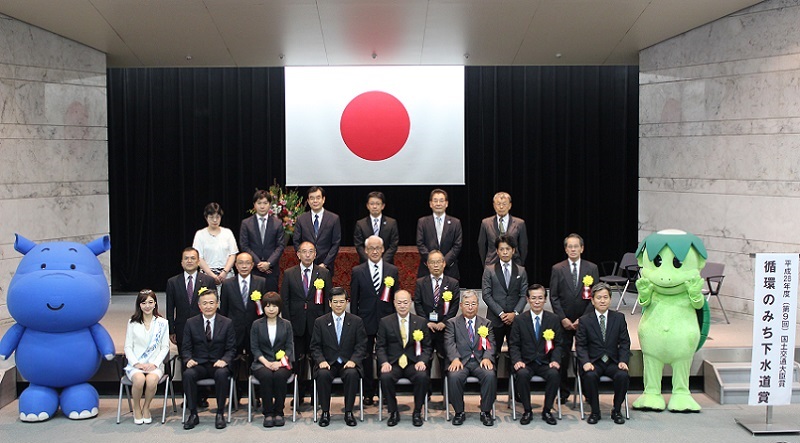 平成28年9月9日(金)に平成28年度国土交通大臣賞「循環のみち下水道賞」の表彰式を行いました。本賞は持続的発展が可能な社会の構築に貢献する下水道に関する優れた取組みに対し表彰を行うものです。今回は10件、17団体が受賞し、石井大臣から各団体に表彰状が授与されました。