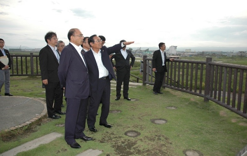 ▲石巻市 旧北上川河口災害復旧事業の視察