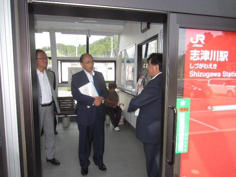 ▲南三陸町 BRT停留所「志津川」の視察