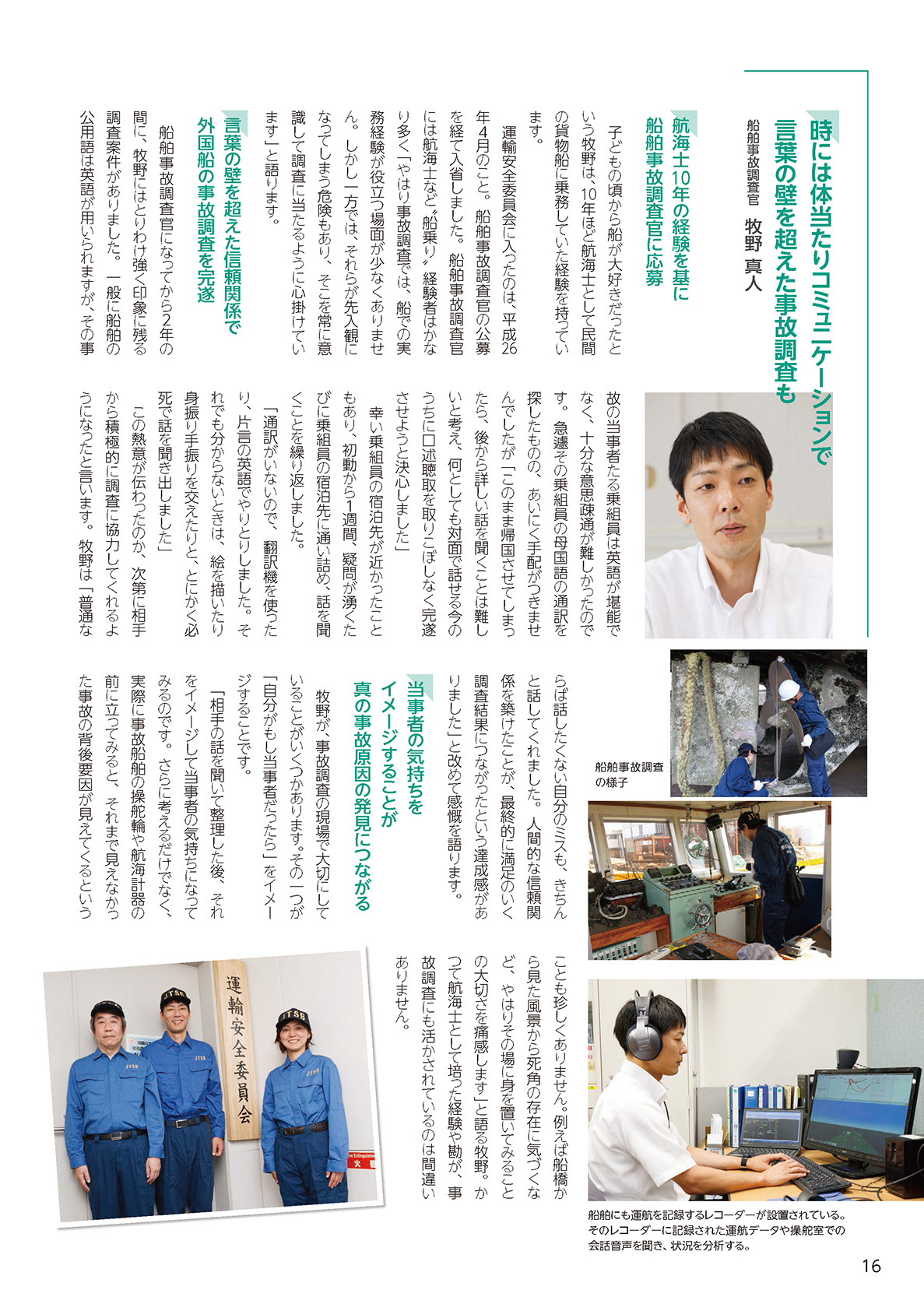 「国土交通」NO.140(2016.10-11)業務密着ルポシリーズ 現場力 運輸安全委員会 事故調査官