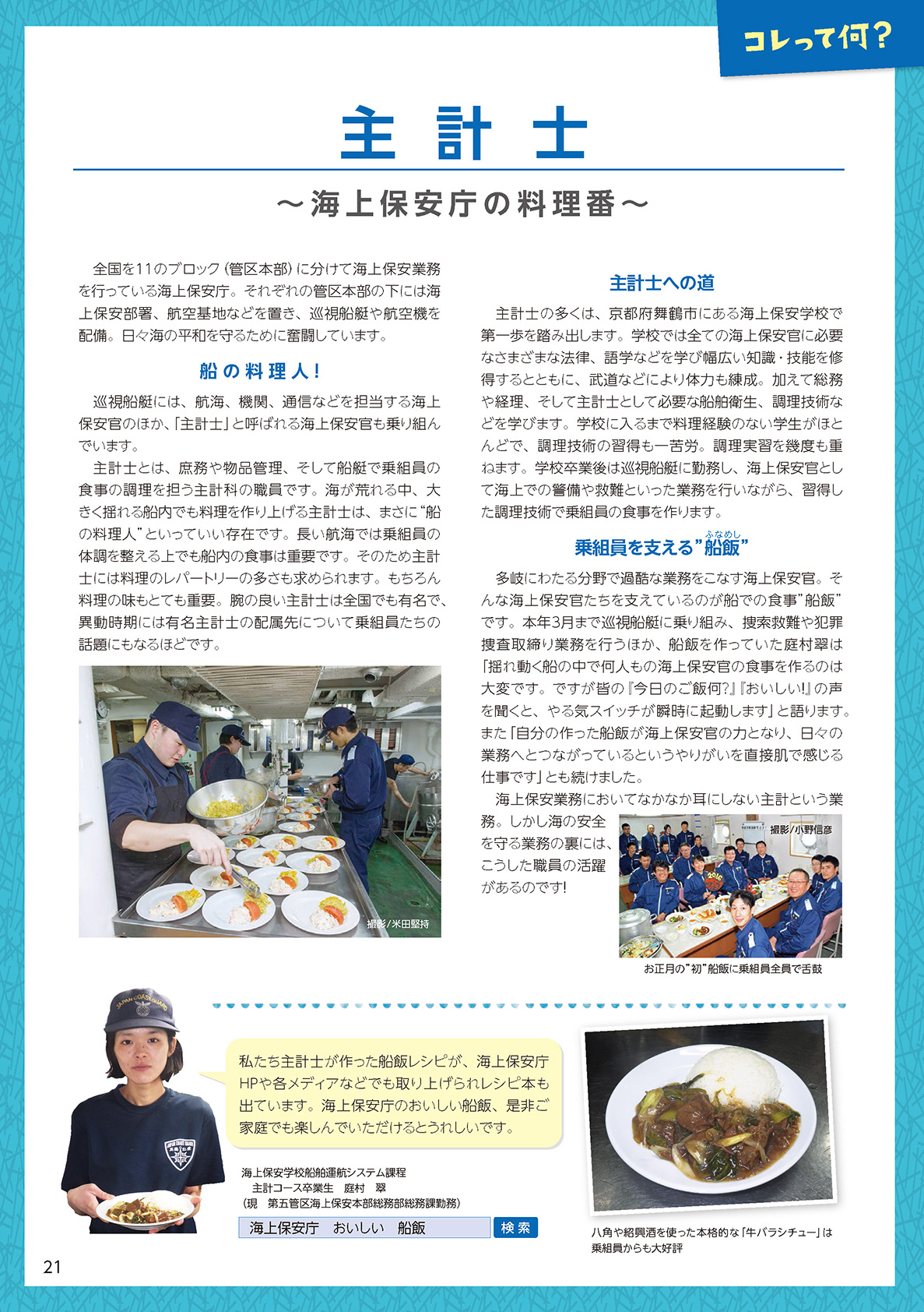 「国土交通」NO.140(2016.10-11)コレって何? 主計士 ~海上保安庁の料理番~