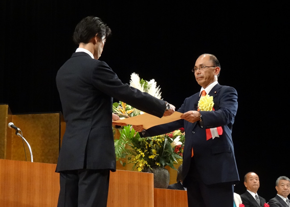 今回は建設マスターとして415名、建設ジュニアマスターとして106名が受賞され、建設マスターの代表者に根本国土交通大臣政務官から国土交通大臣顕彰状が授与されました。