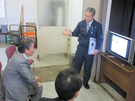 また、衝突実験施設では、国土技術総合政策研究所 岡道路交通研究部長から施設について説明、及び研究内容の説明、高落差実験水路では、国土技術総合政策研究所 天野河川研究部長から施設について説明、及び研究内容の説明、橋梁撤去部材ヤードでは、国土技術総合政策研究所 木村道路構造物研究部長から、施設について説明、及び研究内容の説明があり、実験の様子等を視察しました。