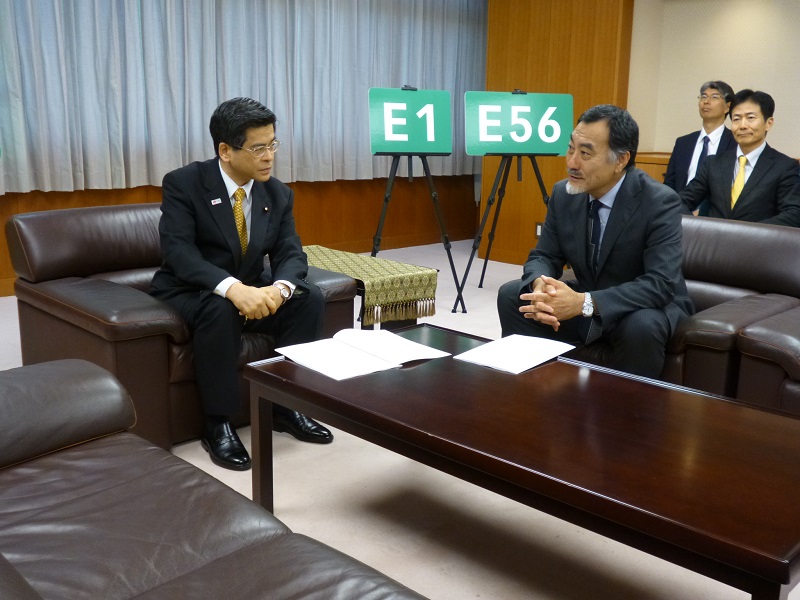 提言を受け取った大臣は『訪日外国人の方をはじめ、高速道路を利用するすべての方にわかりやすく案内をすることは重要です。標識やカーナビへの表示など官民一体となって、「高速道路ナンバリング」を実現していきたいと思います。2020年東京オリンピック・パラリンピックを目指し、早期に効果が発現されるように取組を進めてまいります。』と述べました。