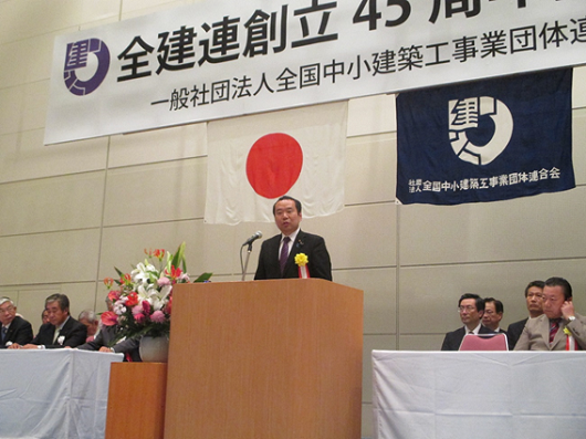 10月27日(木)に藤井政務官が、東京ビッグサイトで行われた「全国中小建築工事業団体連合会」の創立記念式典に出席しました。