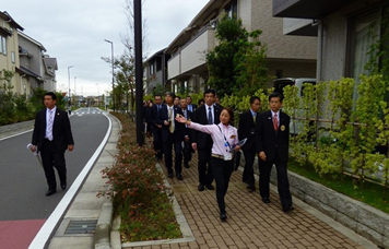 藤沢サスティナブルスマートタウンでは、パナソニック株式会社の案内で、全ての戸建住宅における太陽光発電・蓄電池・HEMS(ホーム・エネルギー・マネジメント・システム)を連携した非常時対応型の創蓄連携システムなど、ハード・ソフト両面からのタウンマネジメントの取組等について説明を受けました。