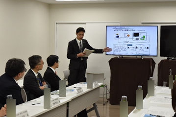 オンデマンド配送システムについて説明を受ける石井大臣