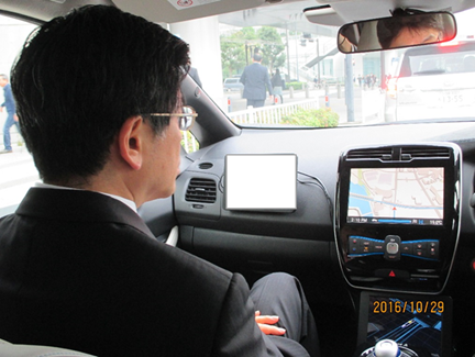 先進的な自動走行技術を搭載した実験車に試乗する石井大臣