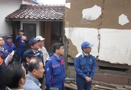 【平成28年11月3日】 10月21日に発生した鳥取県中部を震源とする地震の被災現場を石井大臣が視察